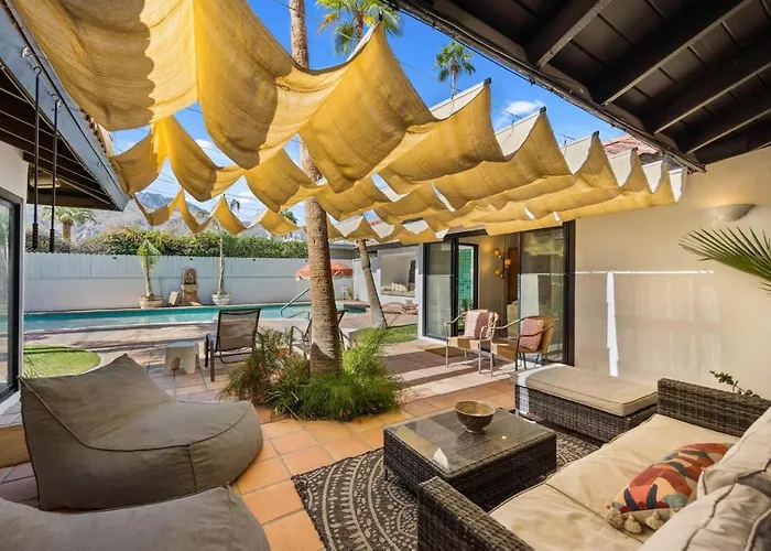 Willa The Rancho Dandy zapewnia komfortowy pobyt z wyposażonym aneksem kuchennym z ekspresem do kawy/herbaty, lodówką i piekarnikiem. Goście mogą zjeść posiłek w restauracji Loco Charlie's Mexican Grill, w odległości 13 min spacerem. Na lotnisko Palm Springs International można dojechać z obiektu w 10 min.